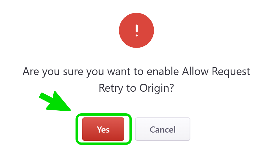 If the button/toggle to the right of the mention Allow Request Retry to Origin displays Disabled, then you can enable it as follows: