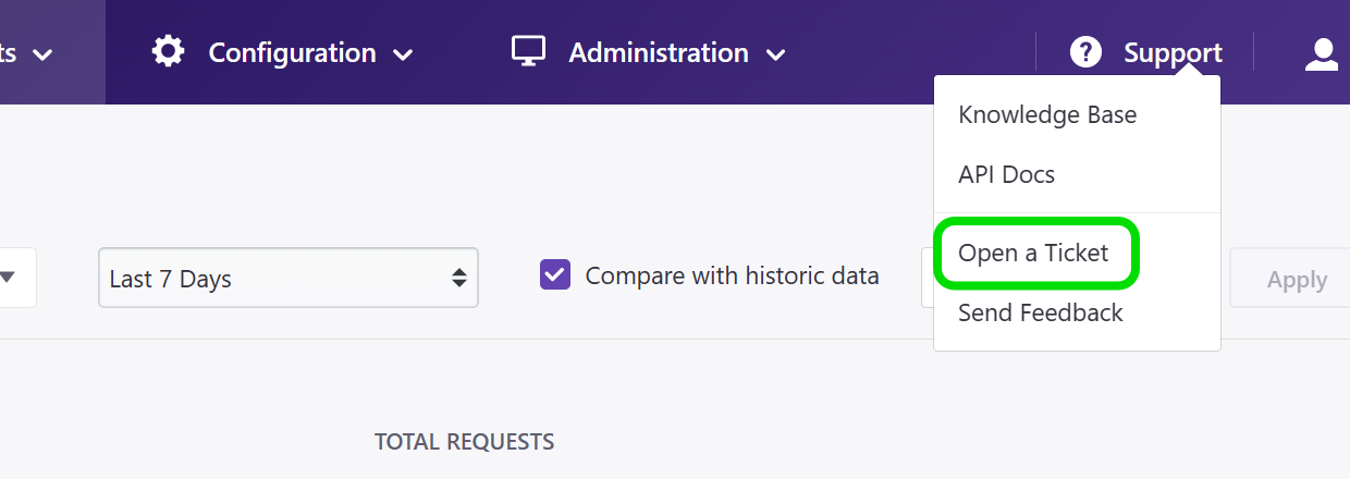 Then, use the link provided (mailto: support@cachefly.com) to make your support request.