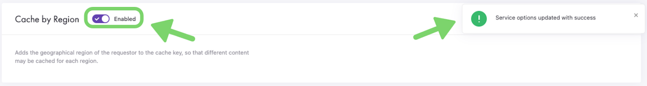 When you enable the Cache by Region option for a given service, the geographical region of the requestor is added to the cache key.