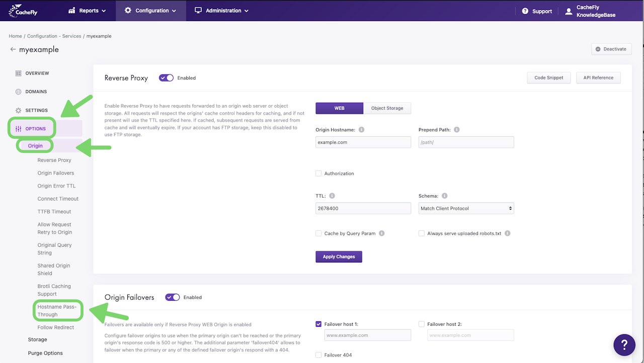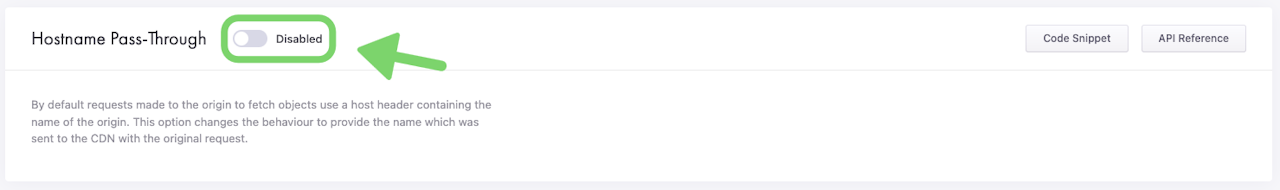 By enabling the Hostname Pass-Through option, the request from the CacheFly service to the origin will instead provide the name which was sent to the CacheFly content delivery network (CDN) with the original request.