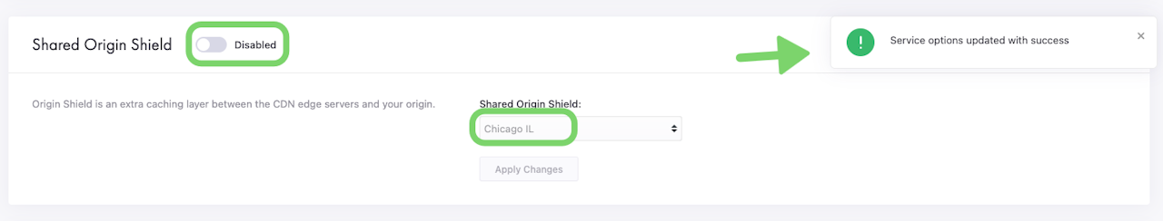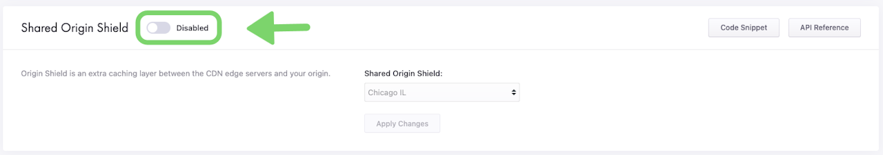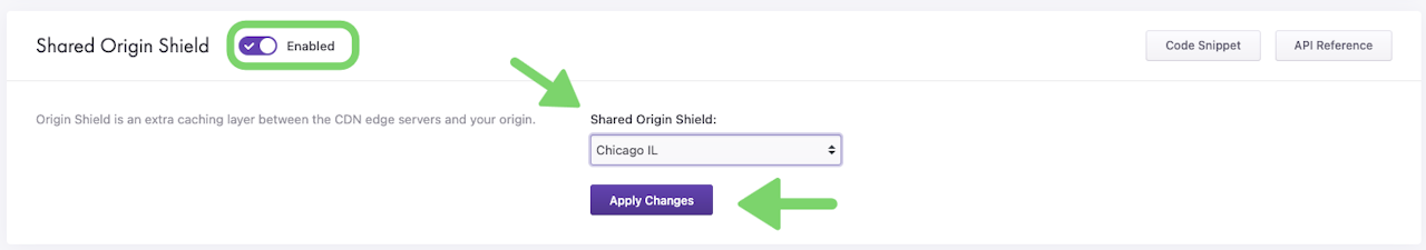 By setting the Shared Origin Shield option, you ensure that all user requests for your origin are directed to the Shared Origin Shield of your choice. The Shared Origin Shield serves the CacheFly network and thus your users with your content. Retrieval of objects from your origin only happens when necessary.