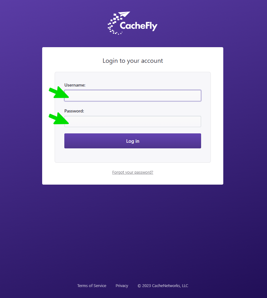 The login credentials (username and password) for your CacheFly user account, with the permissions needed for the steps listed above.